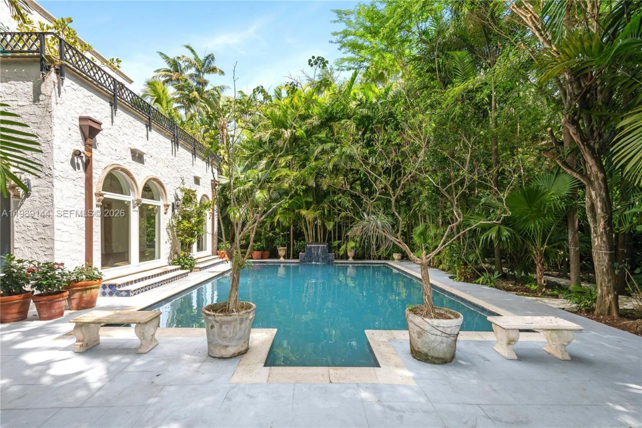 Exceptional opportunity to own a classic, Mediterranean-style home, one of South Coconut Groves most unique properties. This ultra-private estate sits on an extraordinary 21,000 sf lot with a 700 sf pool surrounded by lush tropical gardens. Light-filled interior flows easily from the main living areas to inviting outdoor spaces. This vintage Mediterranean style home offers original Dade County pine floors, a grand living room with 11 ft ceilings, wood burning fireplace and adjoining sunroom creating a most enjoyable serene setting and timeless appeal. The formal dining room has an adjoining butler pantry, and the kitchen opens to a garden patio perfect for alfresco dining. On the second floor, there are 2 bedrooms, bath and a Primary Suite with a wood burning fireplace, bathroom with rainfall shower and steam and private terrace overlooking the pool and grounds. Impact windows throughout, full home generator and multiple CC cameras. Available architectural plans to upgrade the house to a total of 6,217 sf and 5-bedroom suites, presenting a rare opportunity to enjoy the existing residence, expand, or create a new custom estate. Whether you choose to enjoy the home as it is, personalize and expand over time, or design a new custom residence, this exceptional property offers rare flexibility for both end users and developers.