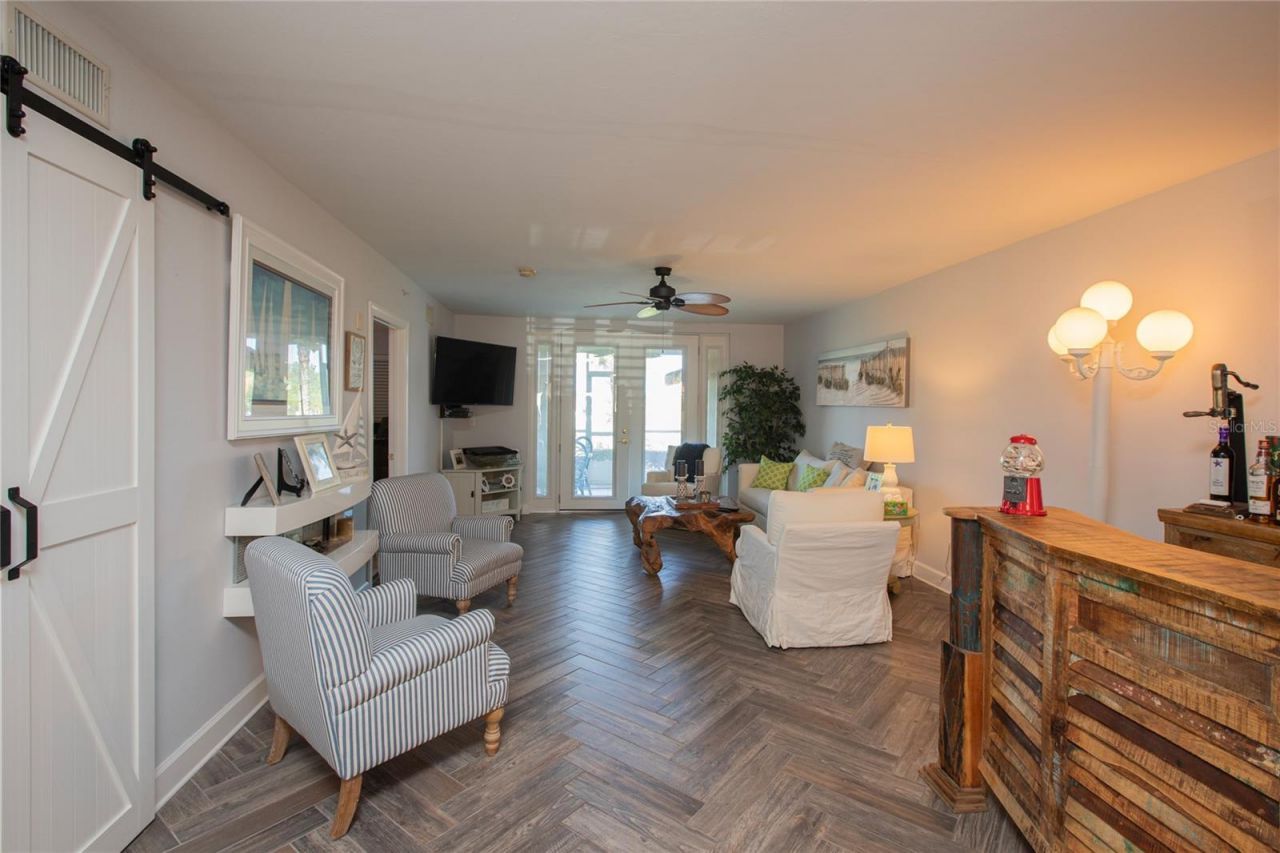 Enter into lushly appointed 2 Bedroom, 2 Bath first floor condo in Bouchelle Island. Upgraded furnishings throughout. Kitchen fully equipped with S/S/ appliances. Living Room leads out to screened Lanai ready to entertain quests with a Margaretta Bar. Master Bedroom with King size bed, Queen size in Guest Bedroom. Master Bath with separate tub and shower. All utilities, including internet and cable included. 6 month rental term.